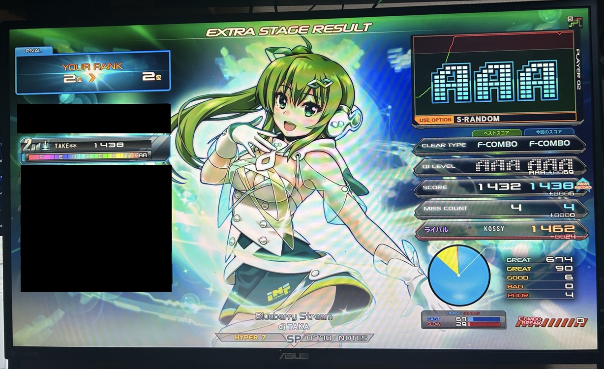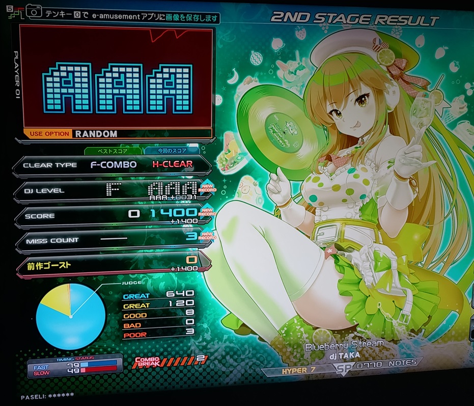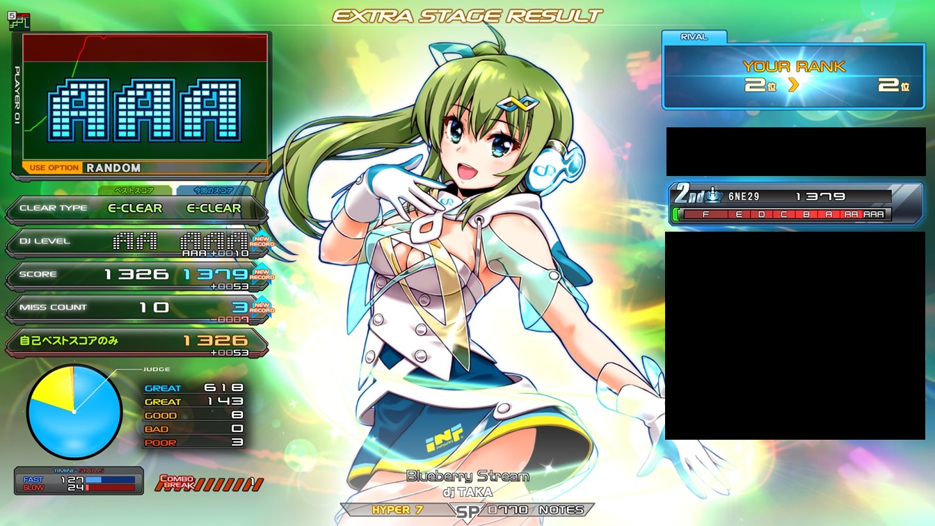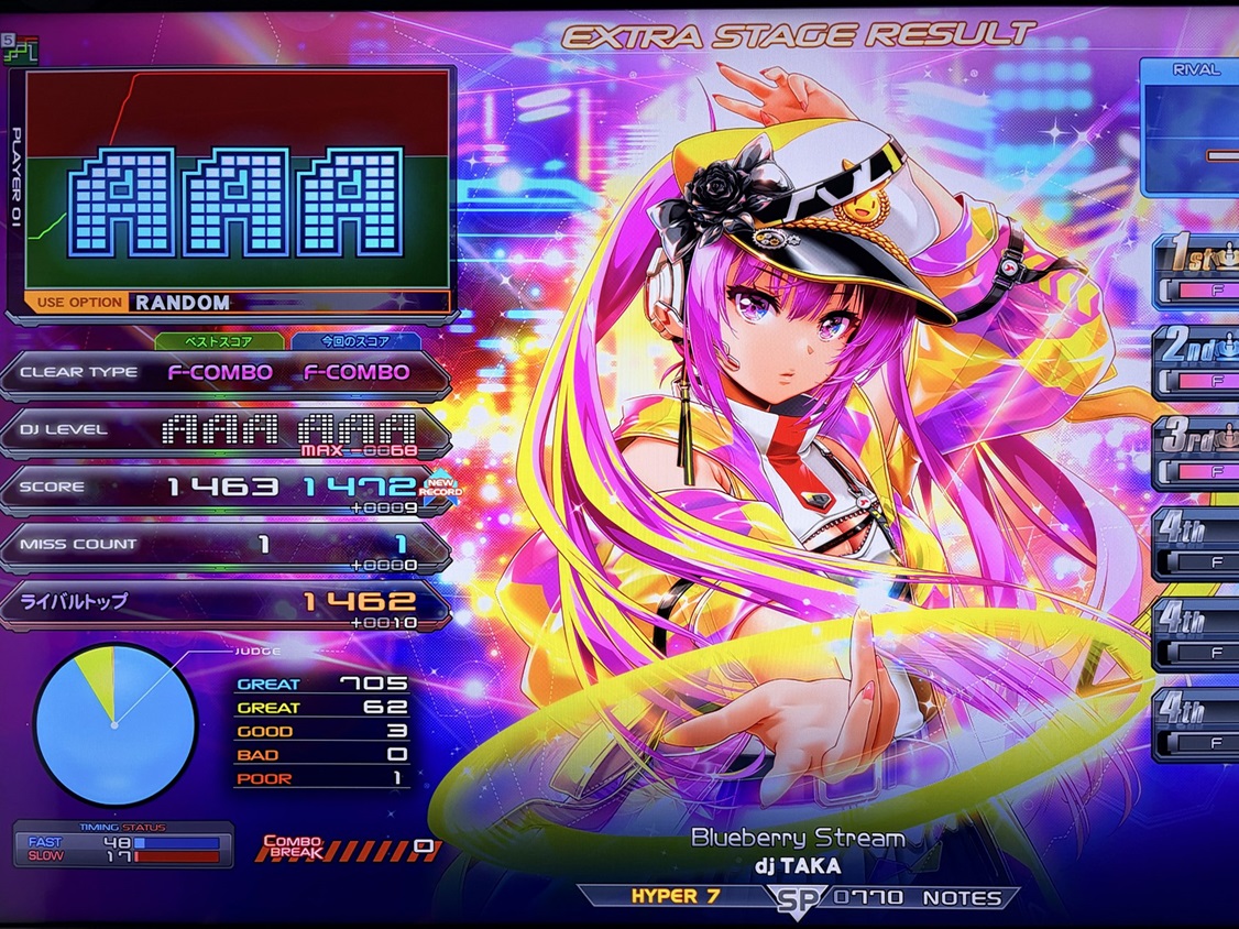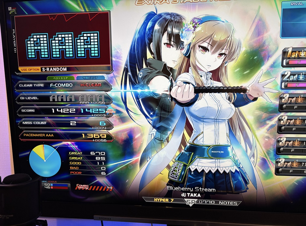 | 順位 | DJ NAME | プレイ環境 | オプション | 6th ☆7 Blueberry Stream MAX:1540 AAA:1369 |