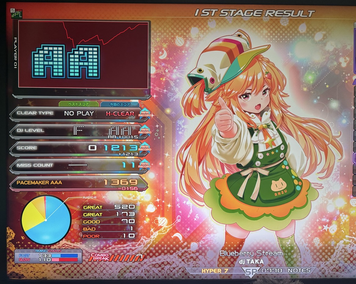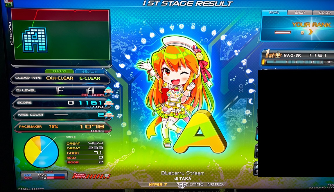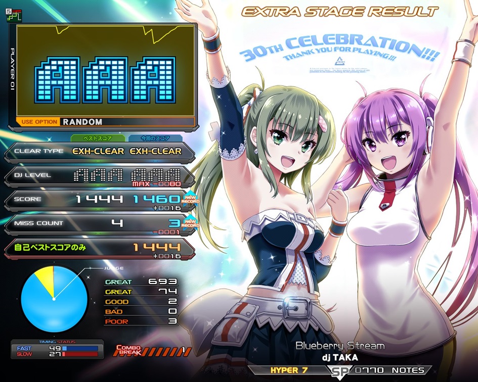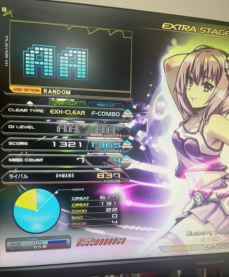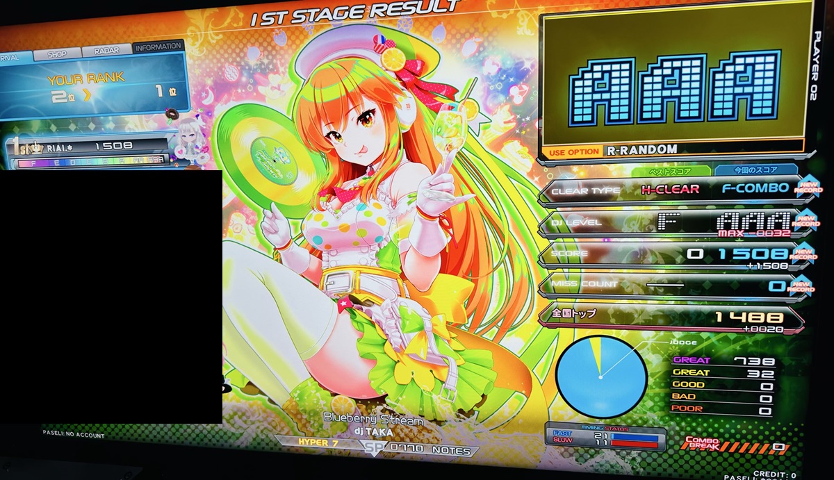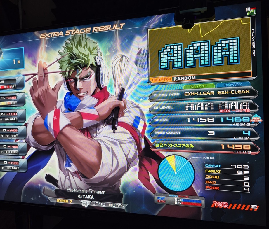 | 順位 | DJ NAME | プレイ環境 | オプション | 6th ☆7 Blueberry Stream MAX:1540 AAA:1369 |