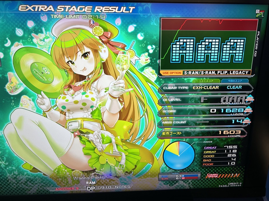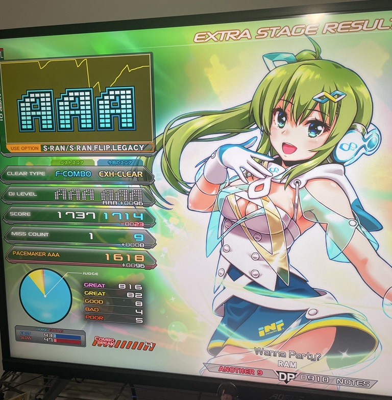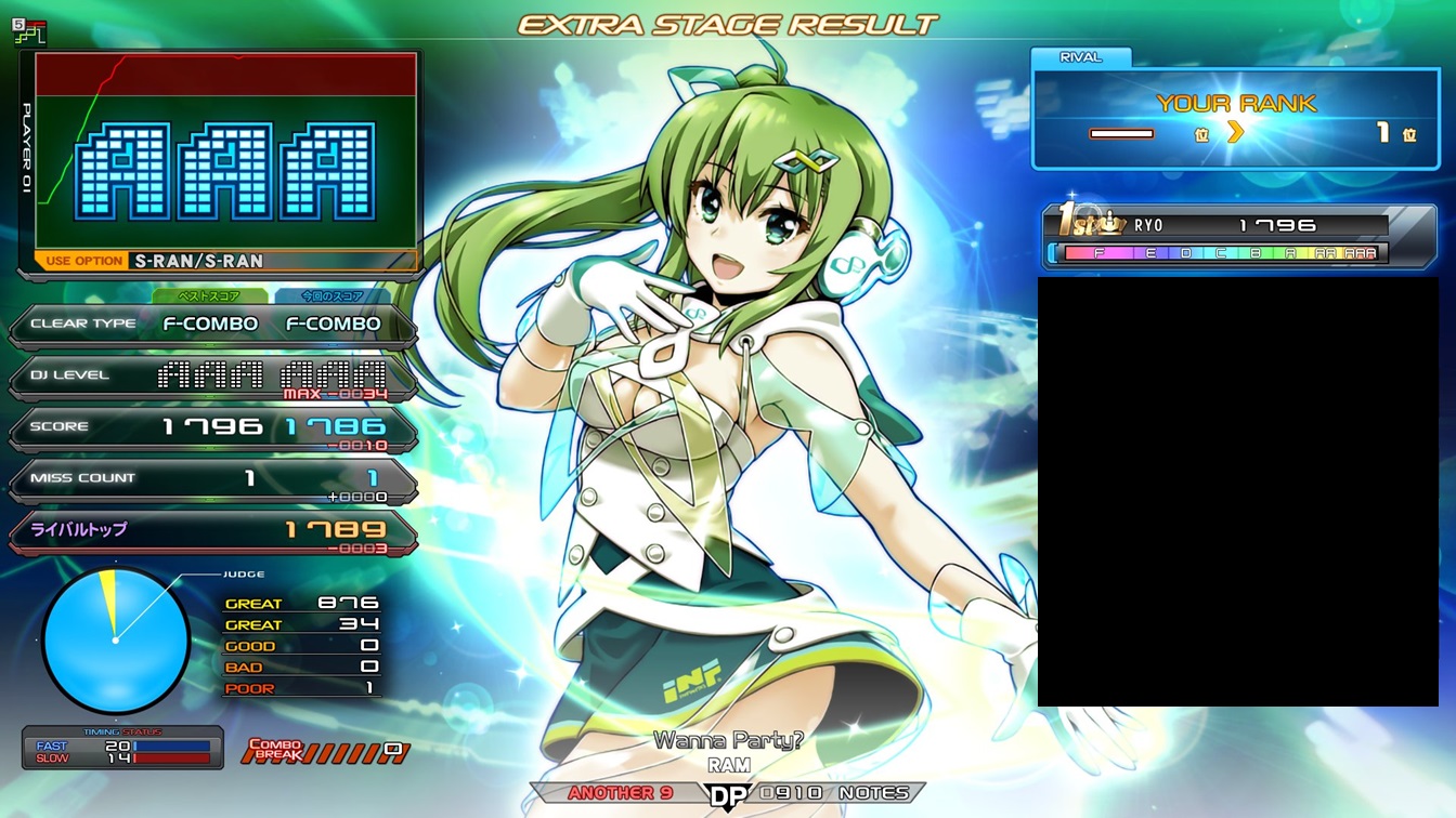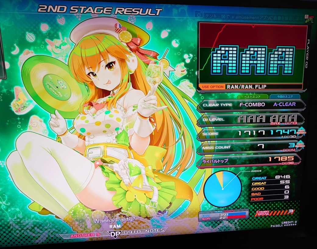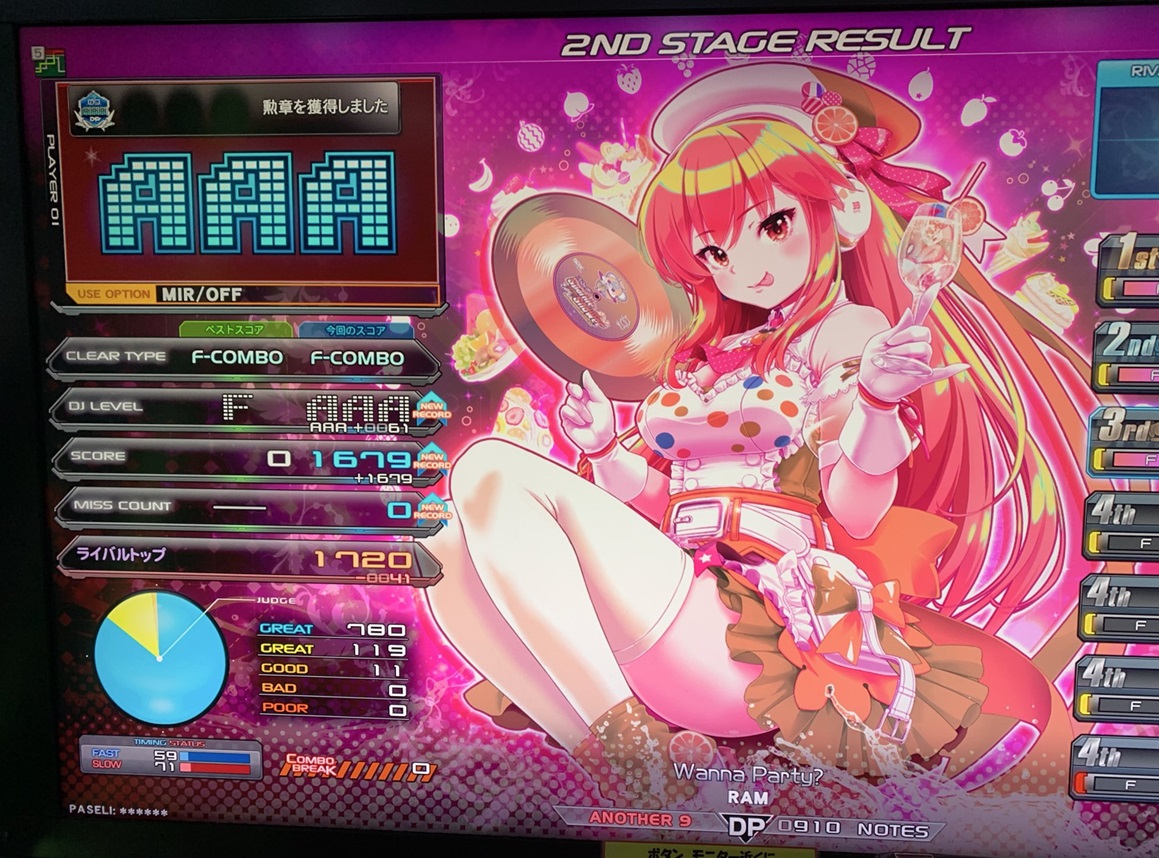 | 順位 | DJ NAME | プレイ環境 | オプション | DJ TROOPERS ☆9 Wanna Party? MAX:1820 AAA:1618 |