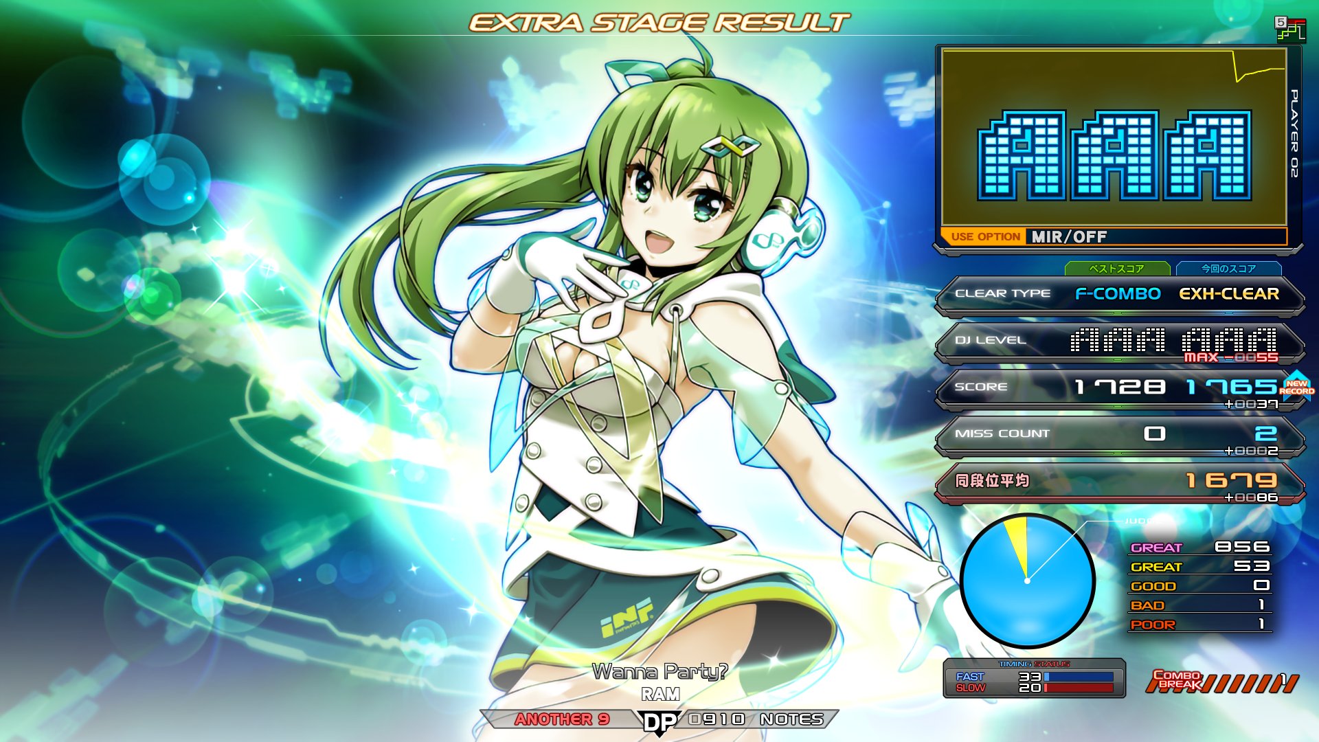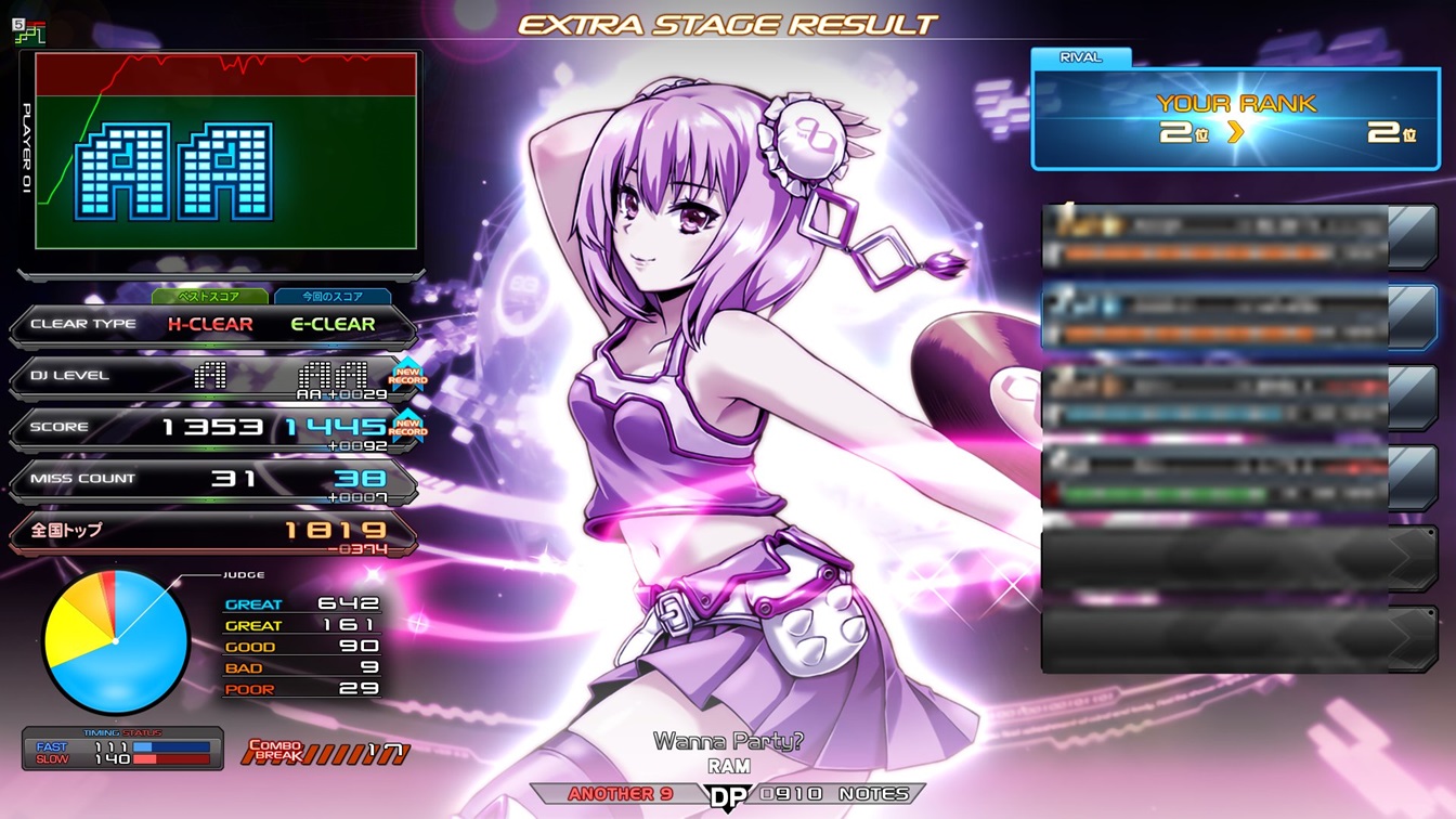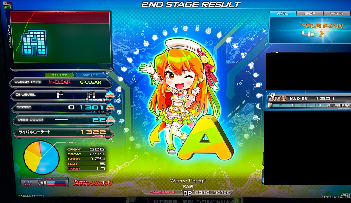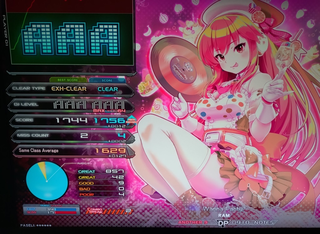| 順位 | DJ NAME | プレイ環境 | オプション | DJ TROOPERS ☆9 Wanna Party? MAX:1820 AAA:1618 |