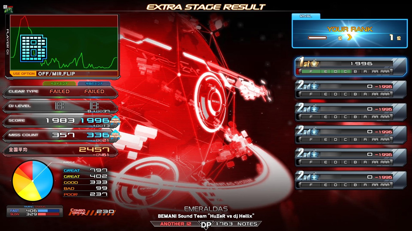 順位 | DJ NAME | プレイ環境 | オプション | CANNON BALLERS ☆12 EMERALDAS BAD+POOR数 |