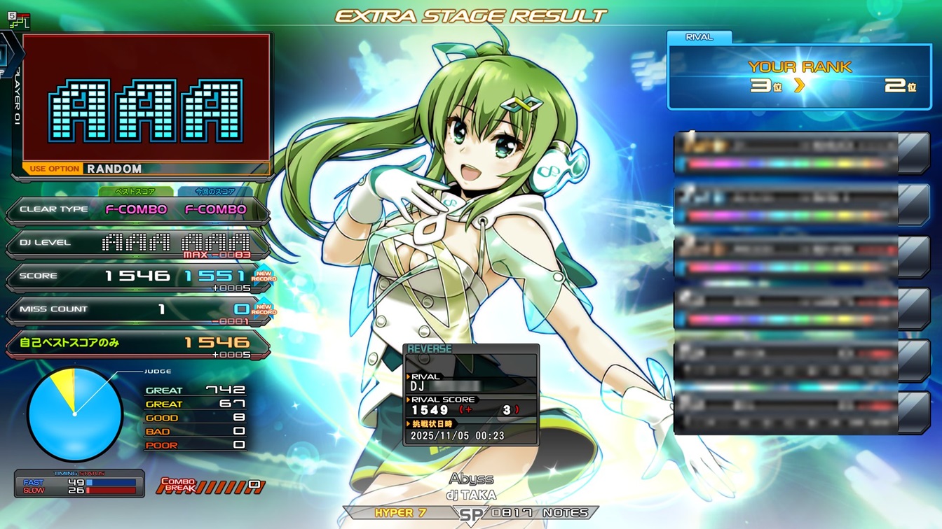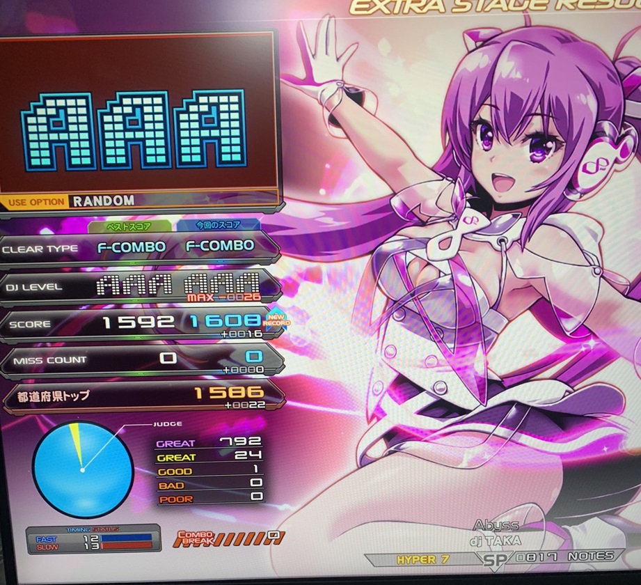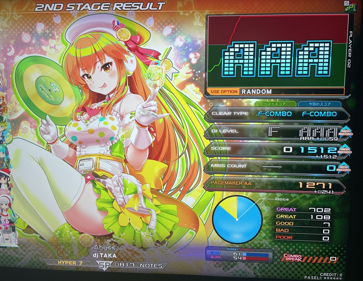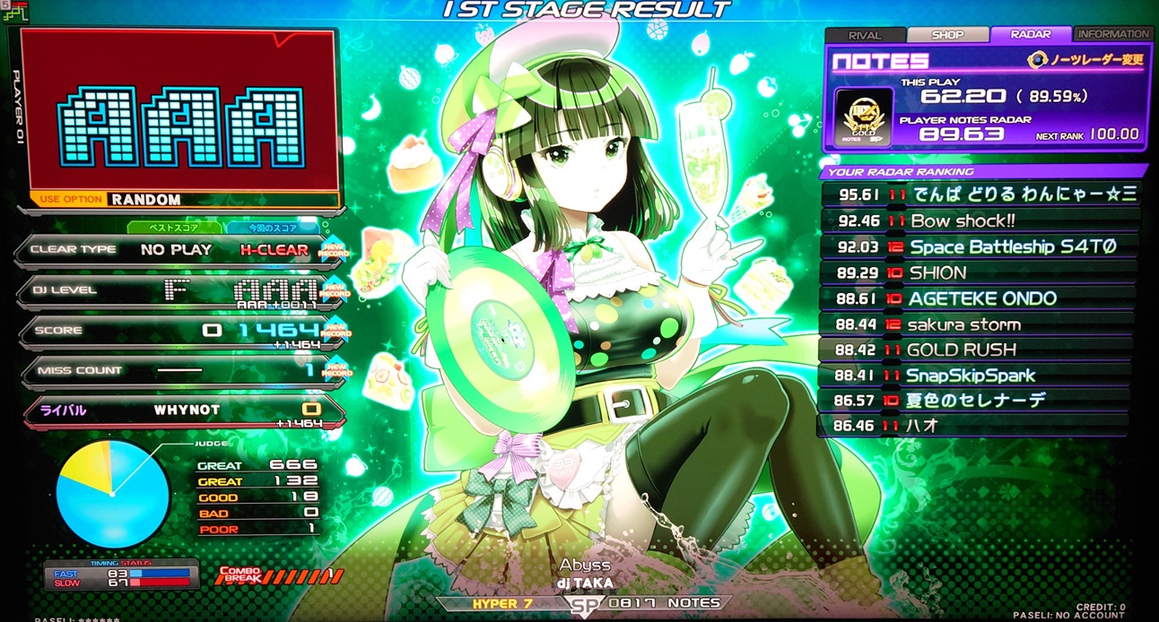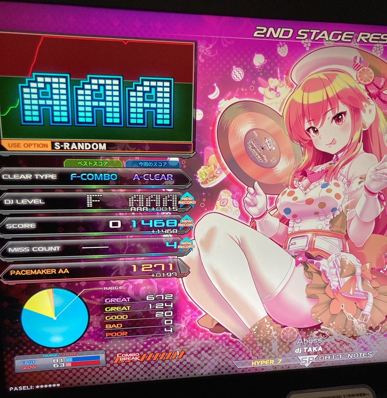 | 8 | あうら | Sparkle Shower | S-RANDOM | 1468 (AAA+15) | -44 | |