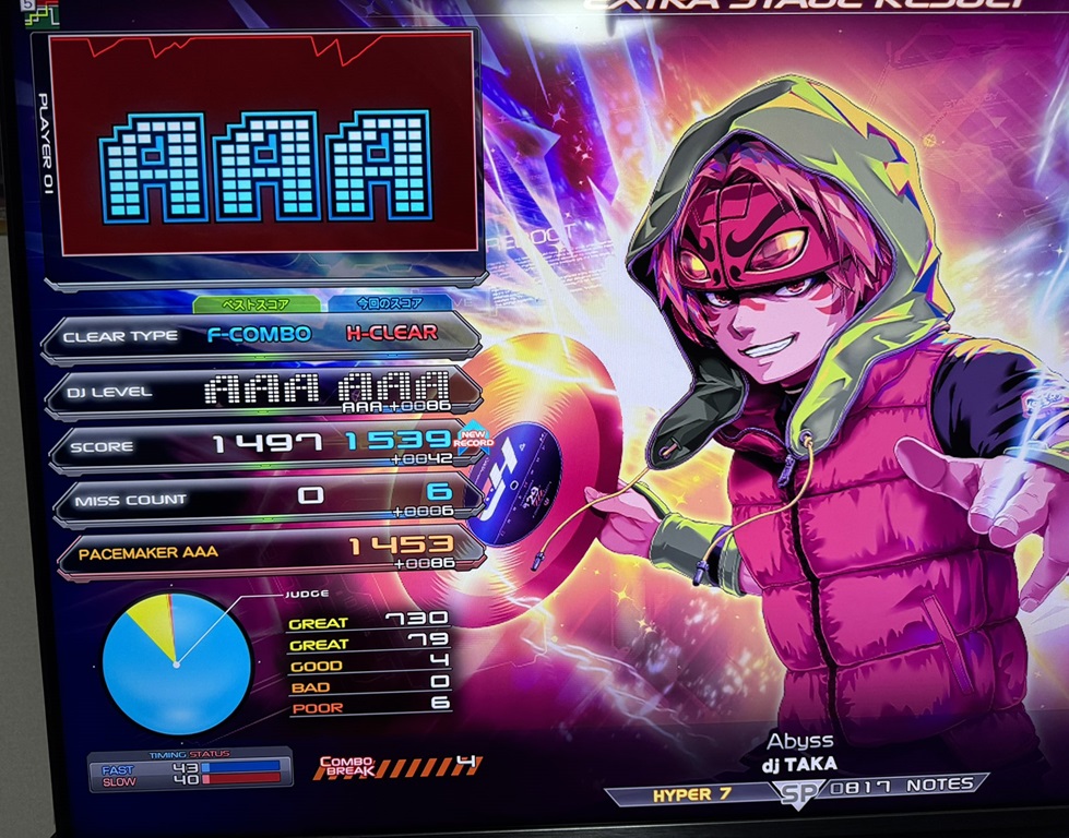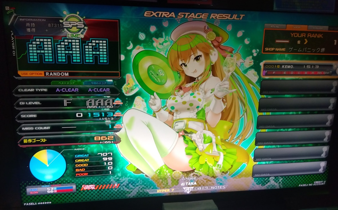 | 順位 | DJ NAME | プレイ環境 | オプション | 5th ☆7 Abyss MAX:1634 AAA:1453 |