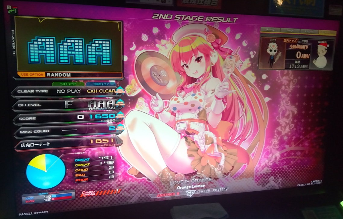 | 12 | あうら | 1697 (AAA+91) | -18 | RANDOM | AC | |