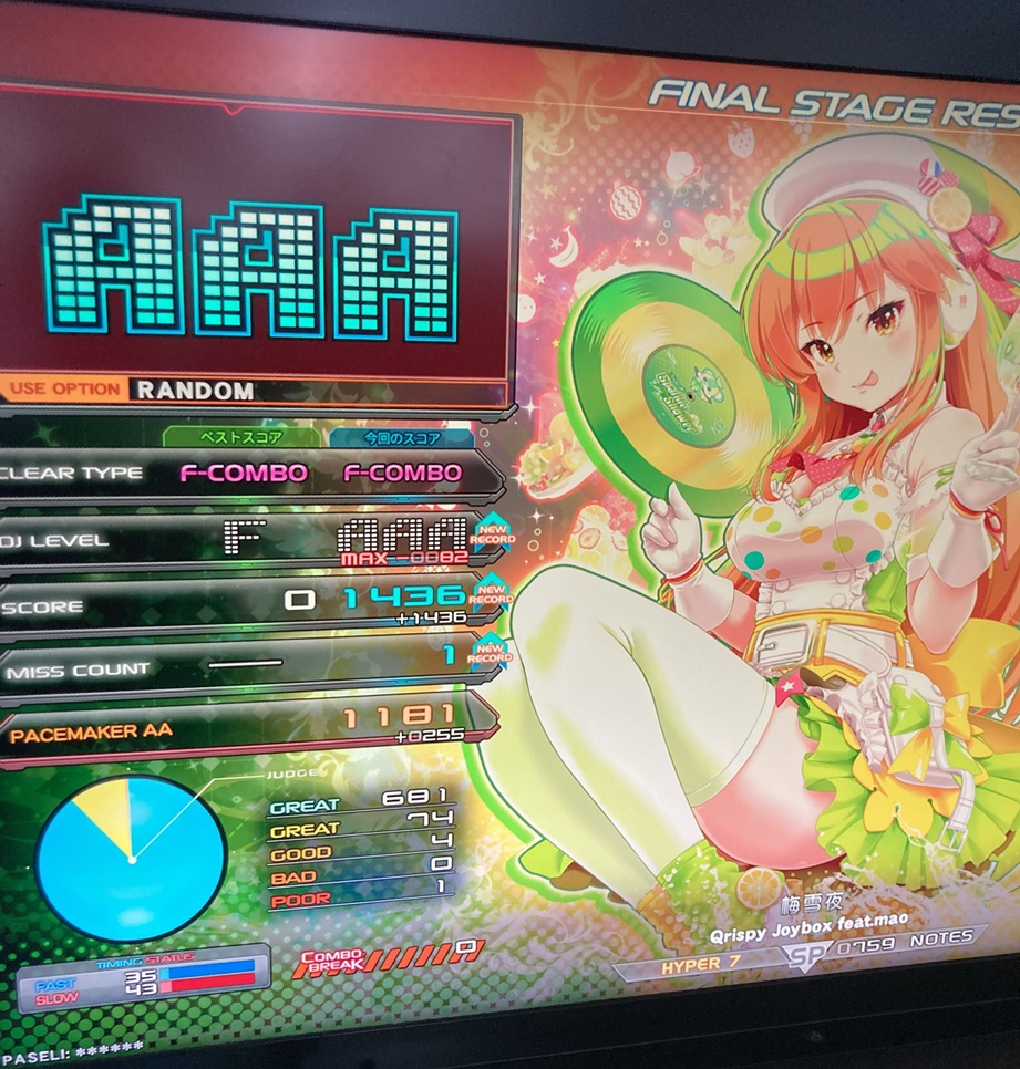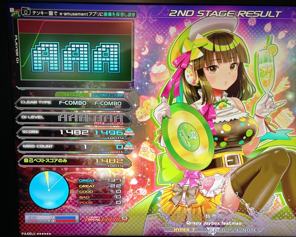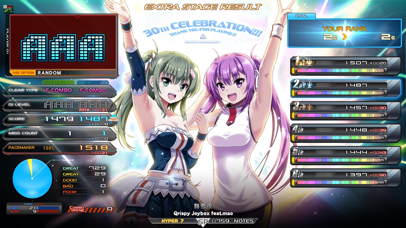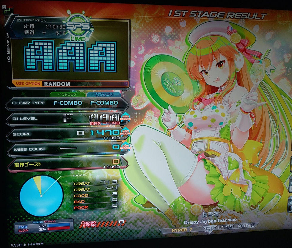 | 9 | あうら | 1436 (MAX-82) | -4 | RANDOM | AC | |