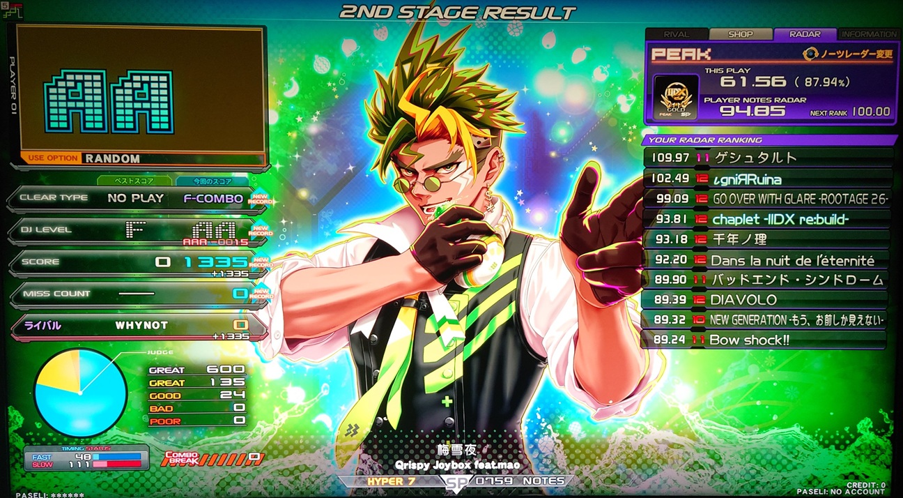 | 3 | TATSU* | 1492 (MAX-26) | -4 | RANDOM | INFINITAS | |