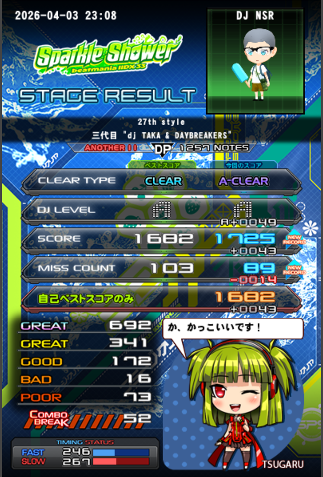 | 順位 | DJ NAME | スコア AAA:2235 MAX:2514 |