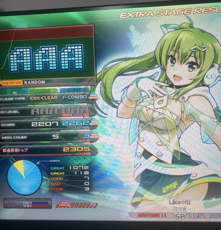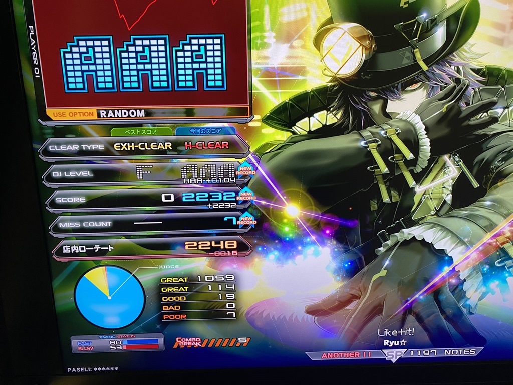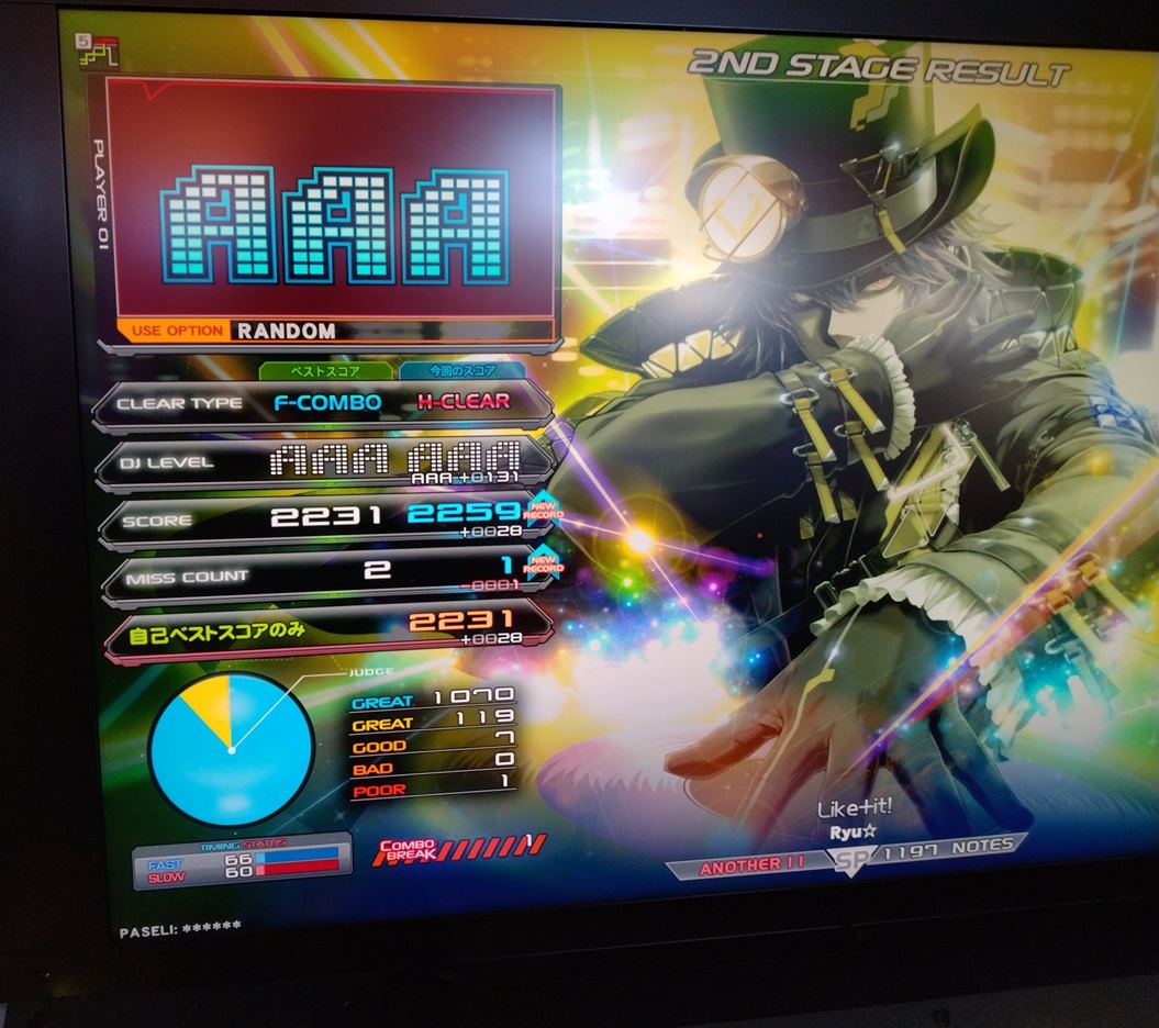 7 | TATSU* | 皆伝 | INFINITAS | 2262 (AAA/MAX-132) | -1 | |