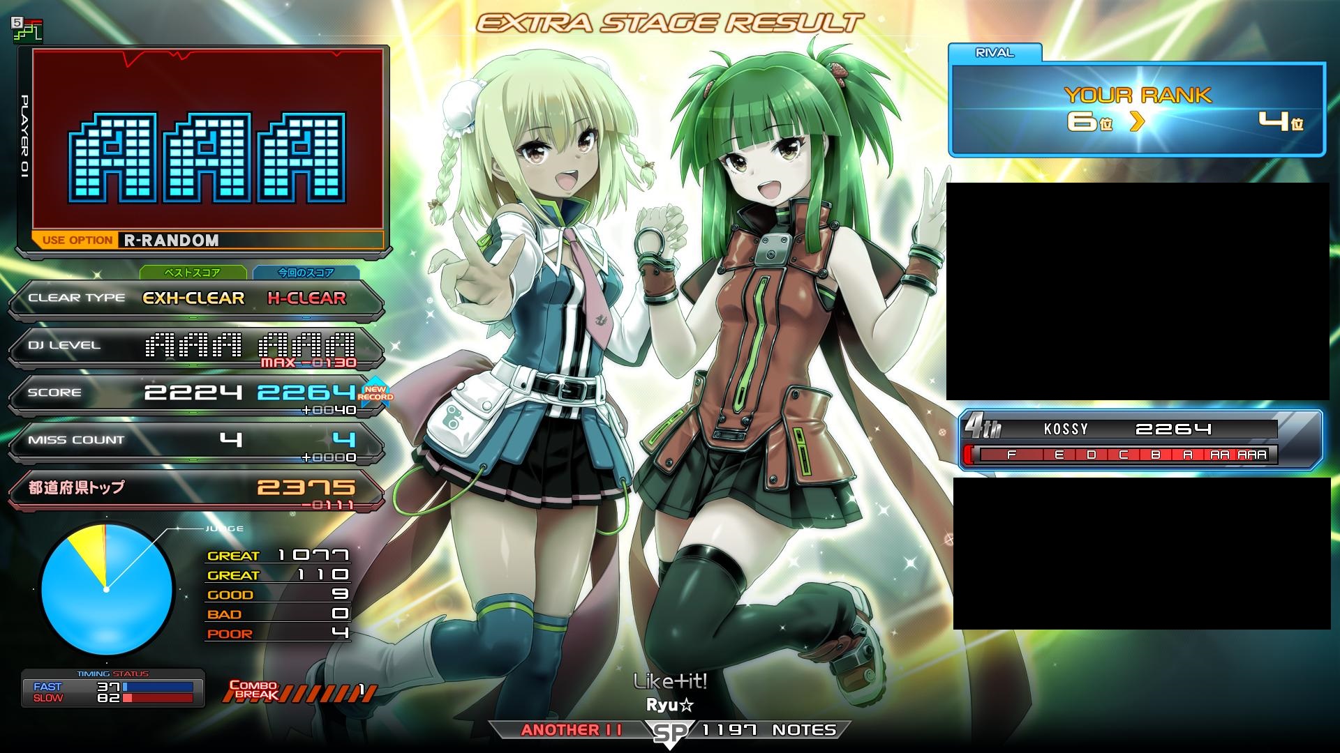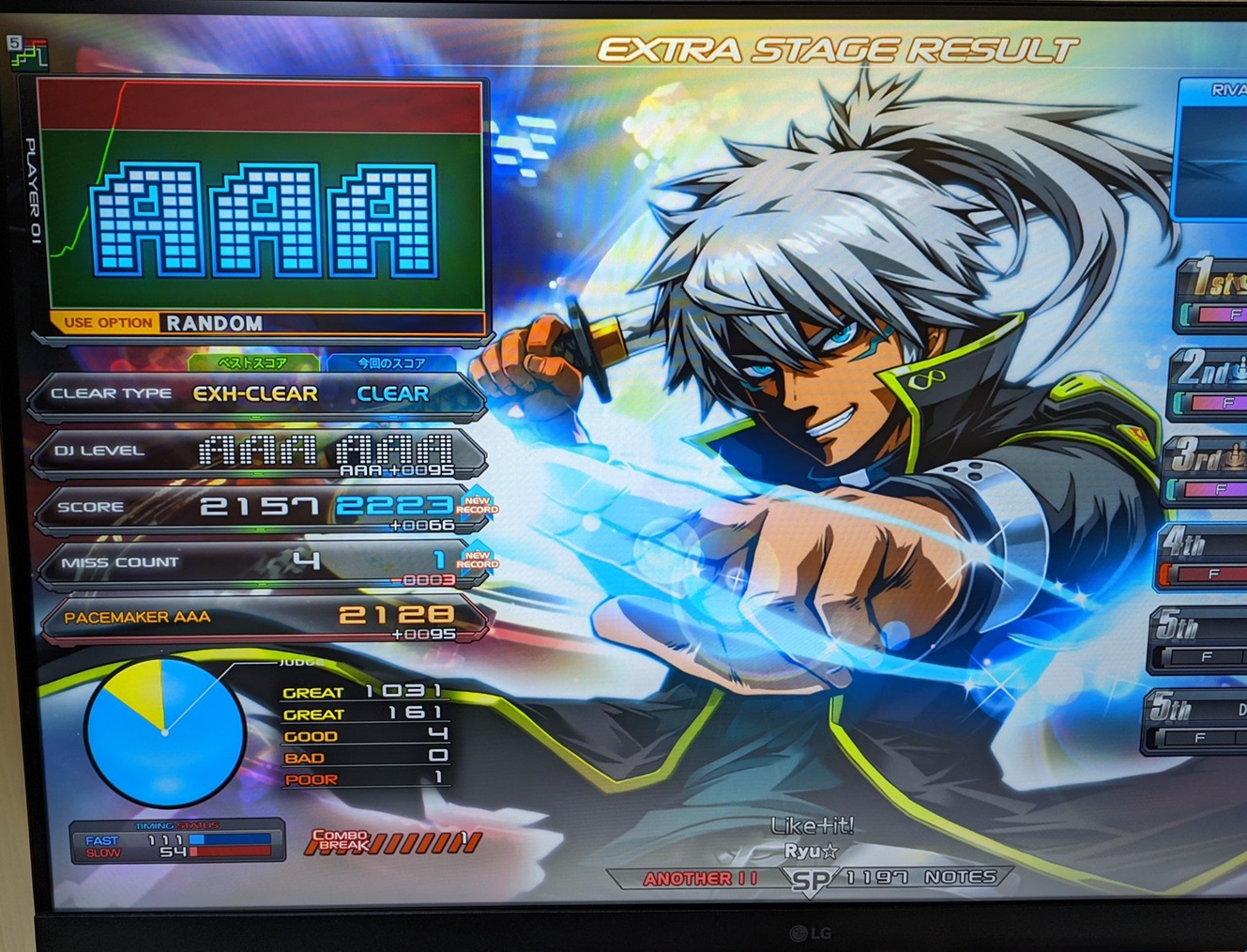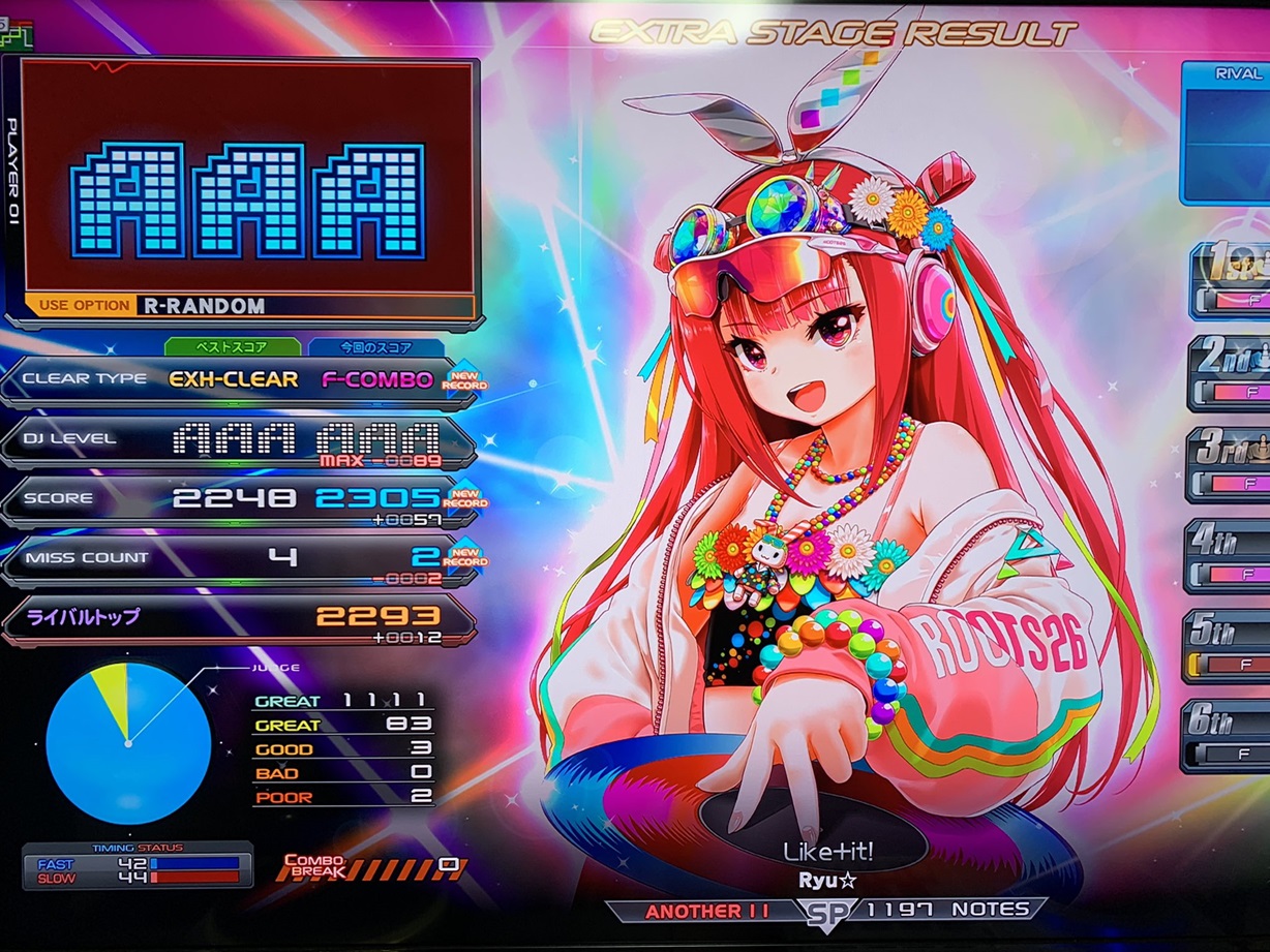 5 | Kossy | 皆伝 | INFINITAS | 2264 (AAA/MAX-130) | -2 | |