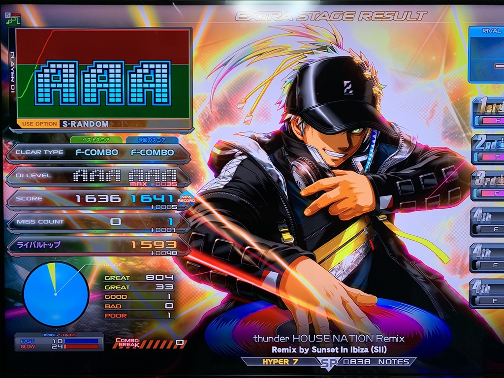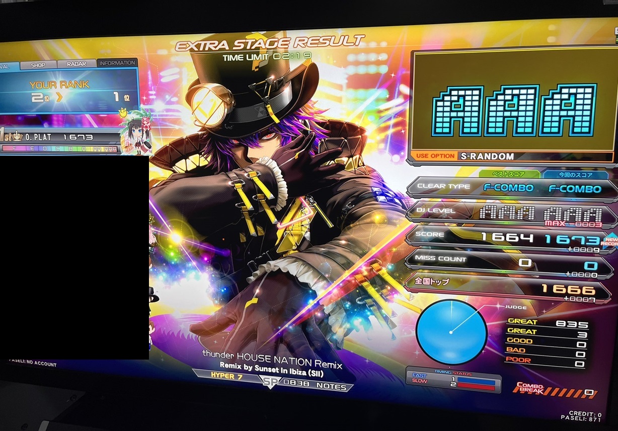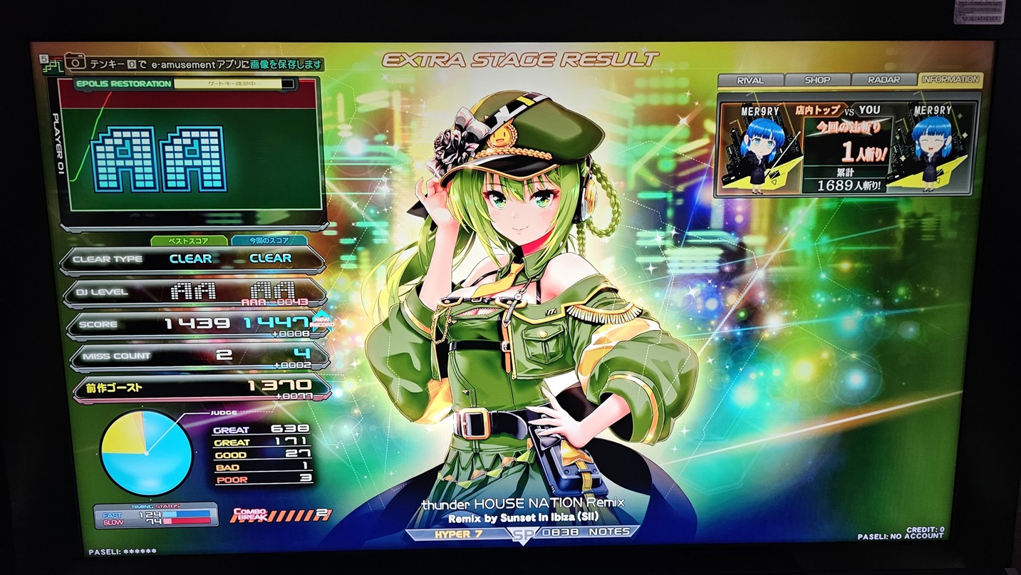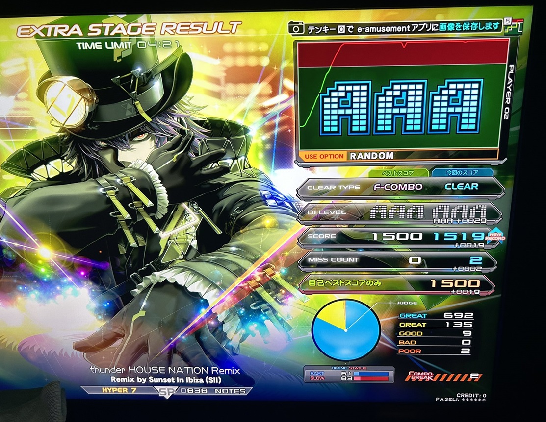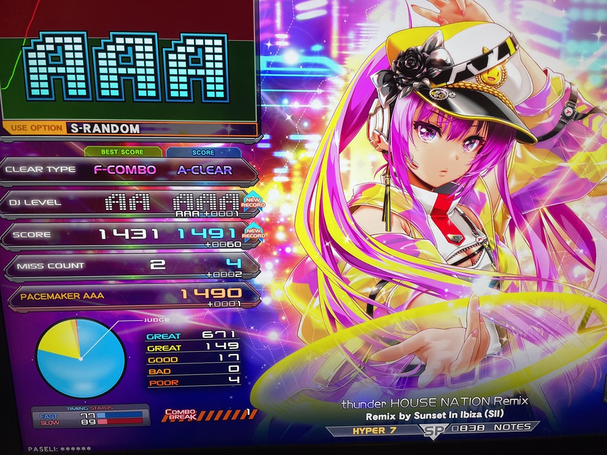 順位 | DJ NAME | SP段位 | プレイ環境 | EMPRESS☆7 thunder HOUSE NATION Remix MAX:1676 AAA:1490 |