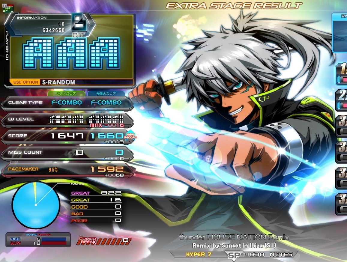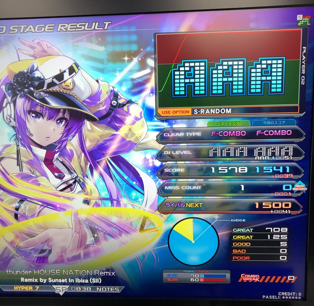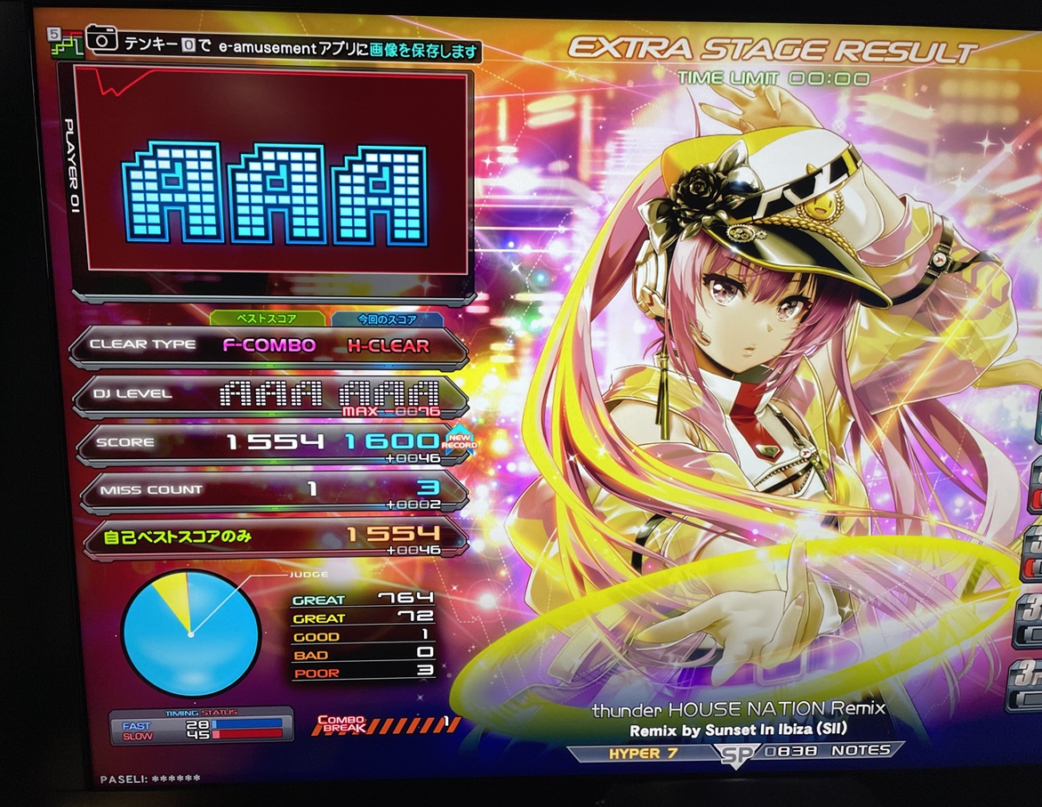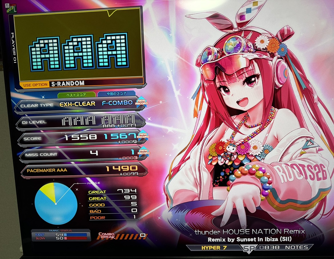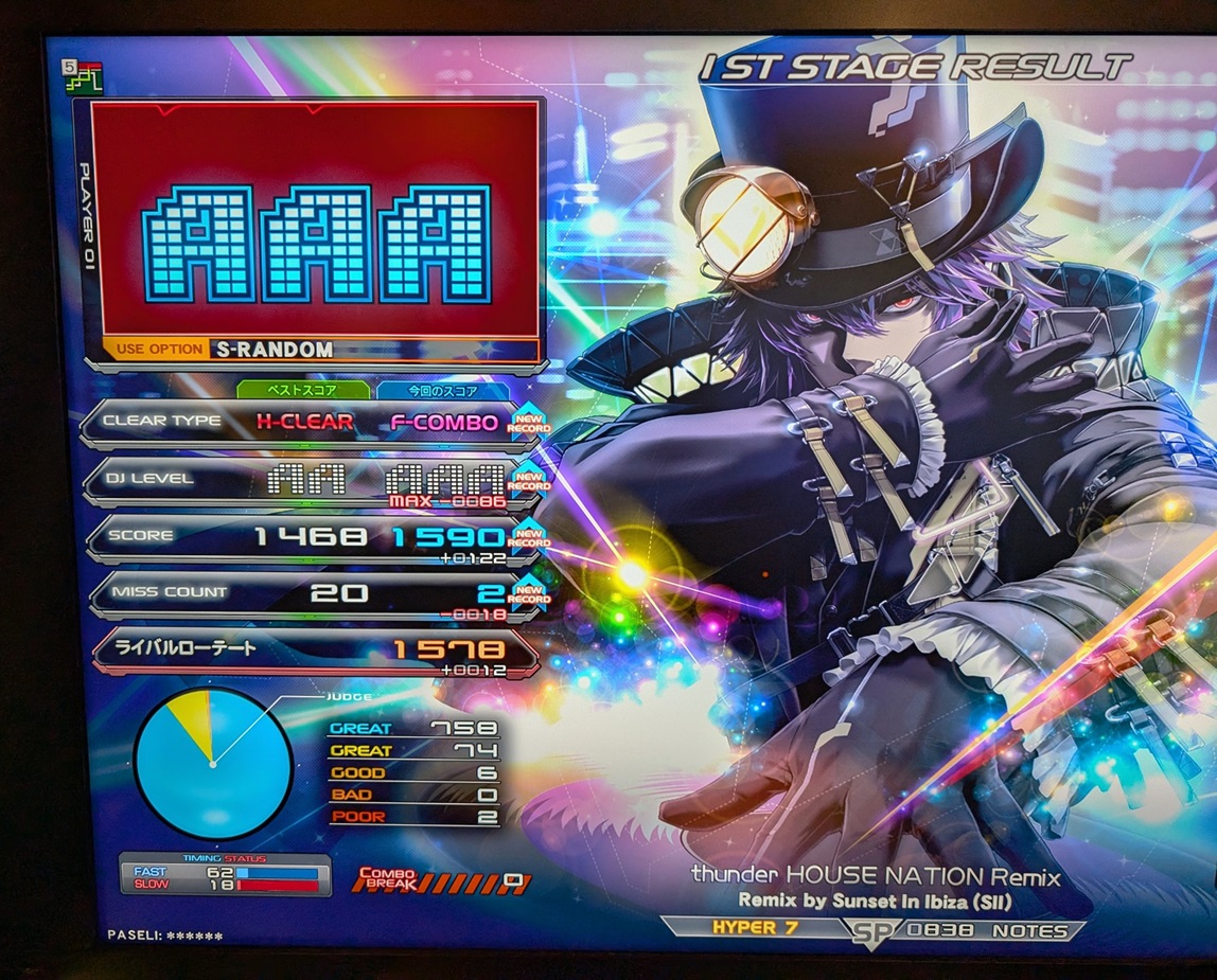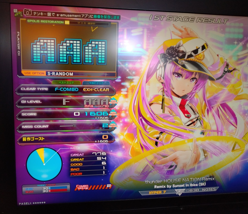 順位 | DJ NAME | SP段位 | プレイ環境 | EMPRESS☆7 thunder HOUSE NATION Remix MAX:1676 AAA:1490 |
