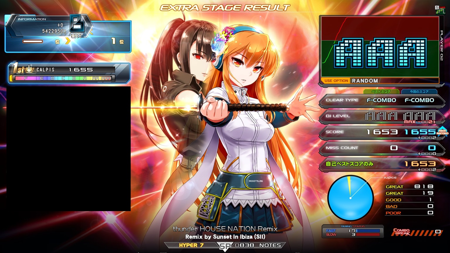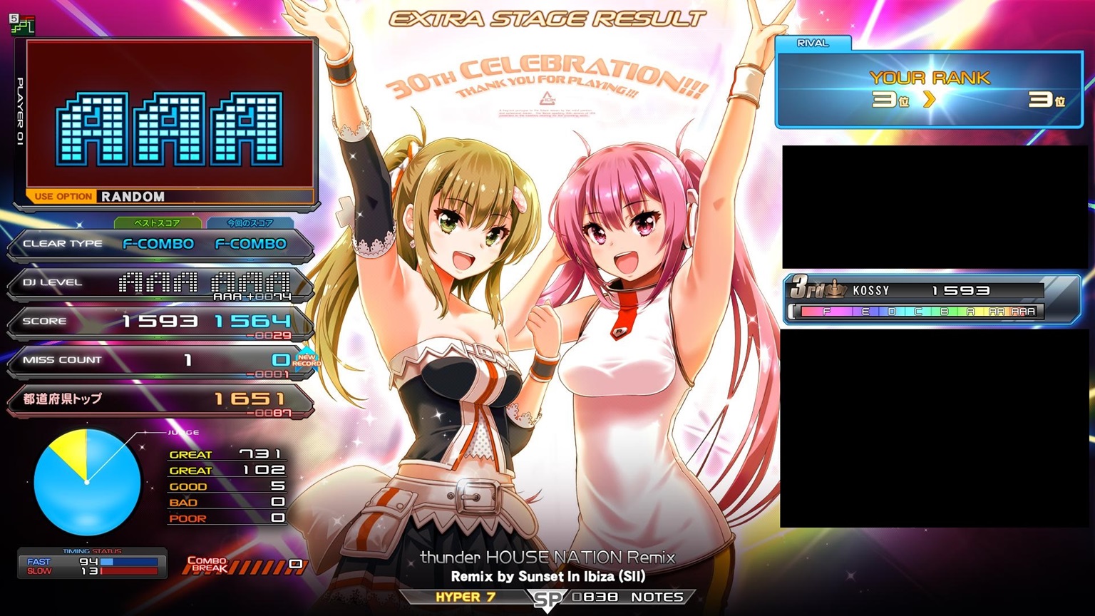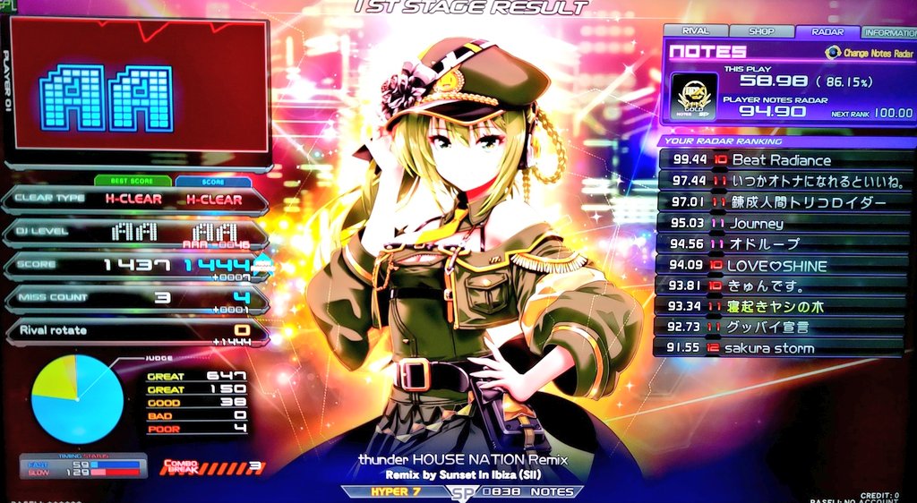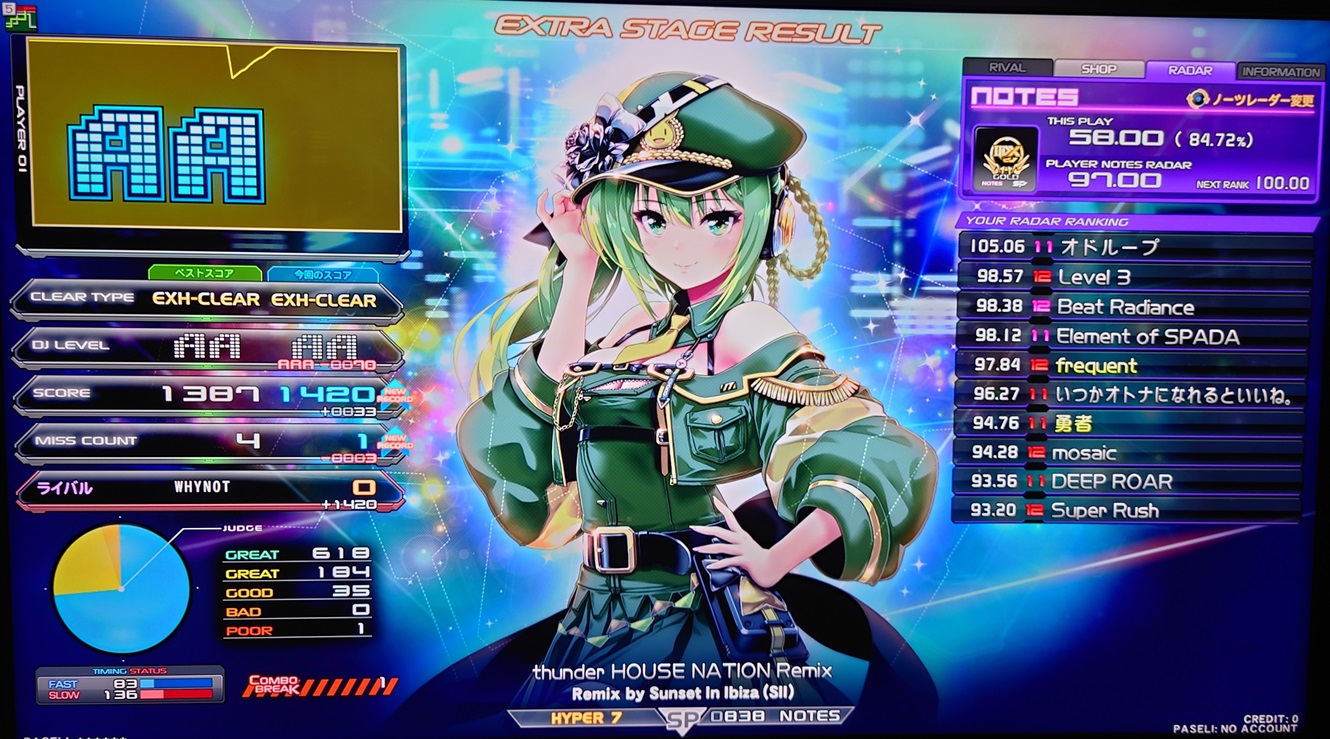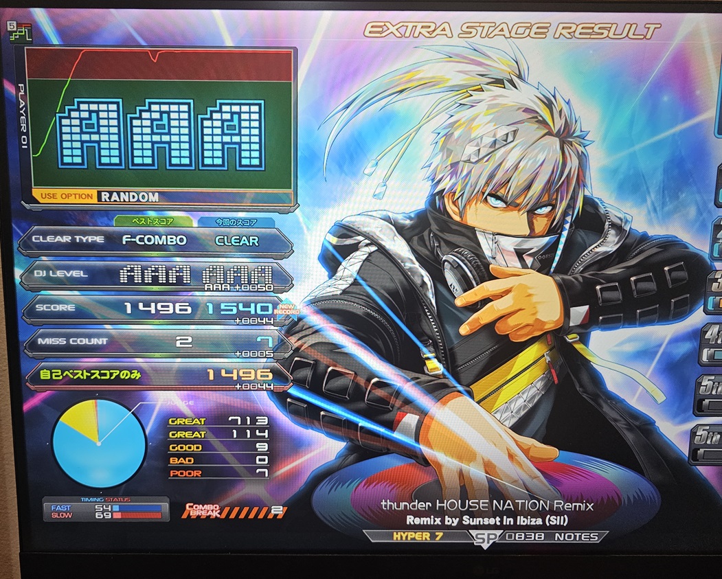 順位 | DJ NAME | SP段位 | プレイ環境 | EMPRESS☆7 thunder HOUSE NATION Remix MAX:1676 AAA:1490 |