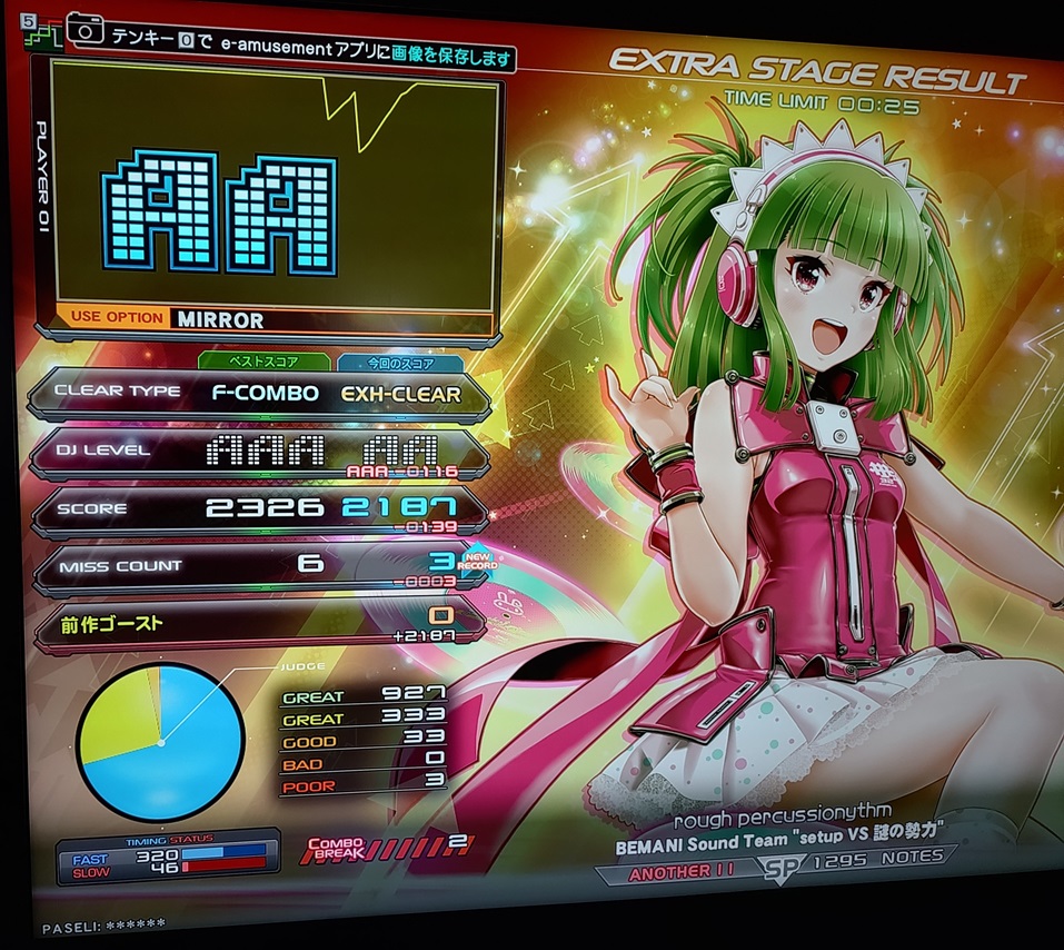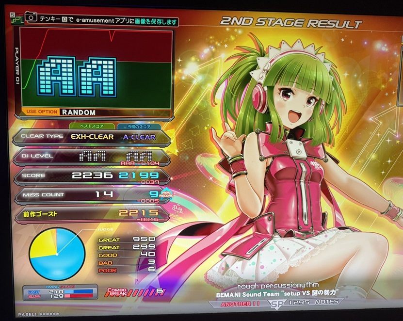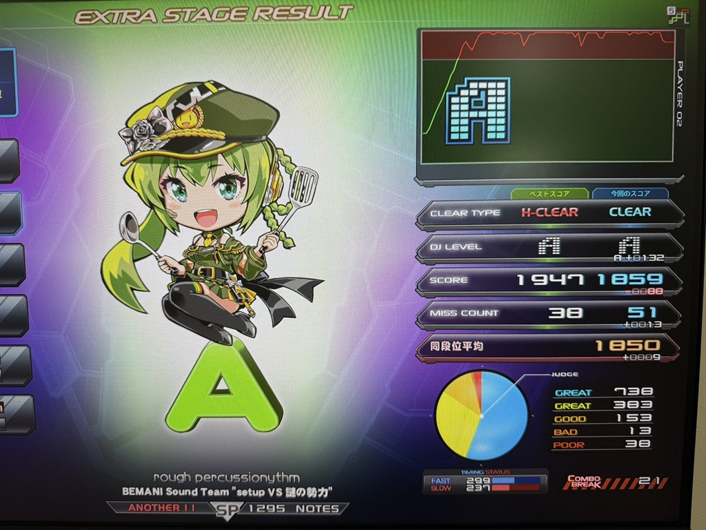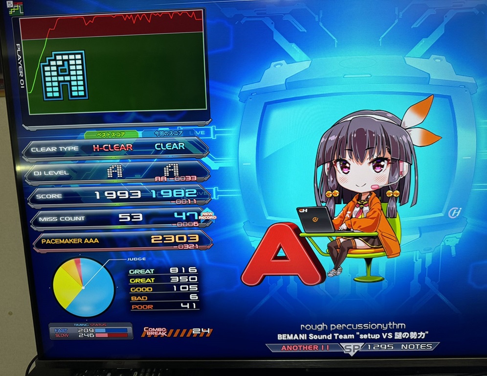 順位 | DJ NAME | プレイ環境 | オプション | HEROIC VERSE ☆11 rough percussionythm BAD+POOR数 |