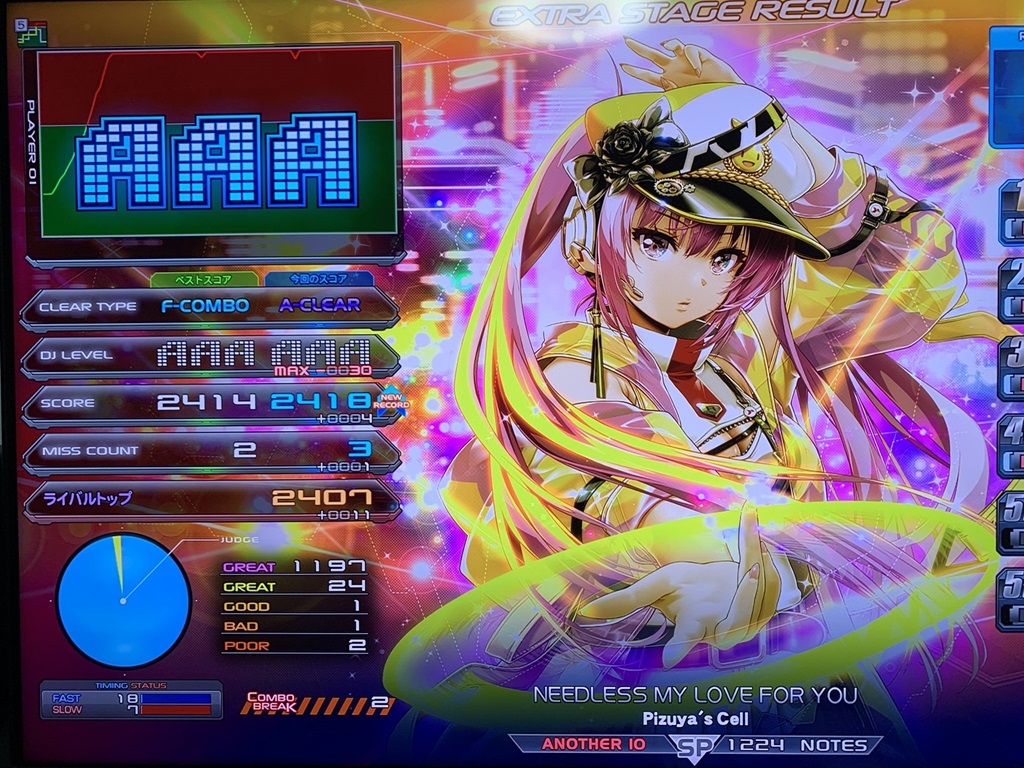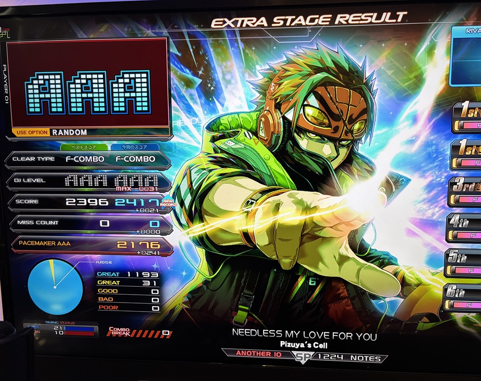 | 順位 | DJ NAME | プレイ環境 | オプション | EPOLIS ☆10 NEEDLESS MY LOVE FOR YOU MAX:2448 AAA:2176 |