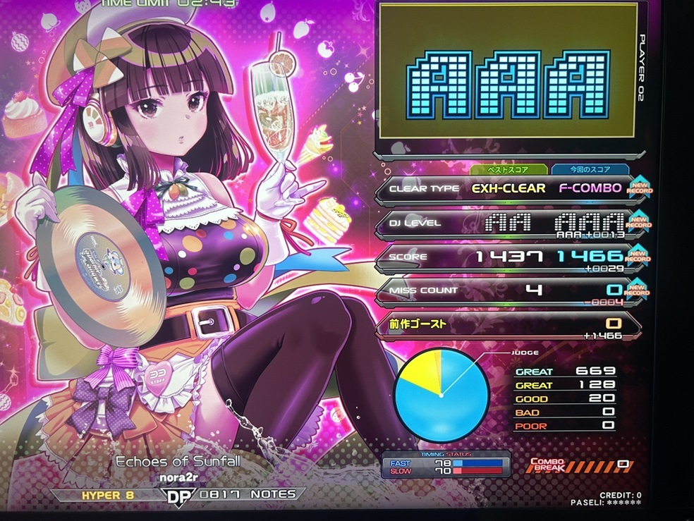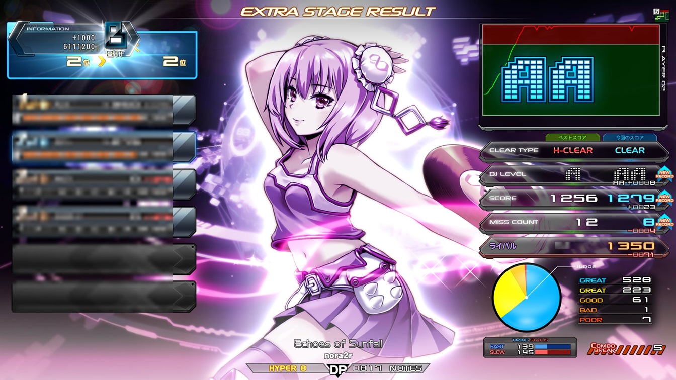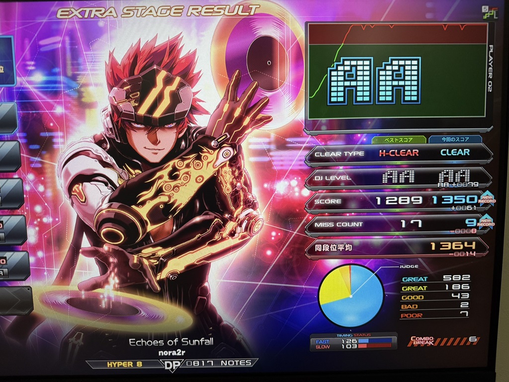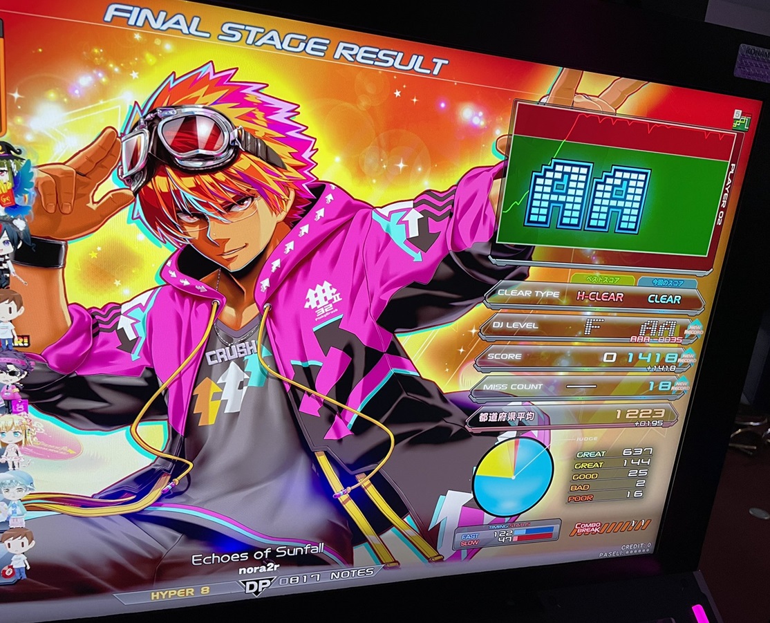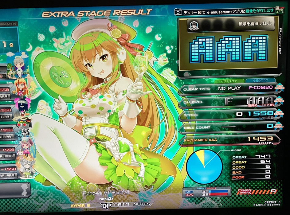 | 順位 | DJ NAME | プレイ環境 | オプション | EPOLIS ☆8 Echoes of Sunfall MAX:1634 AAA:1453 |