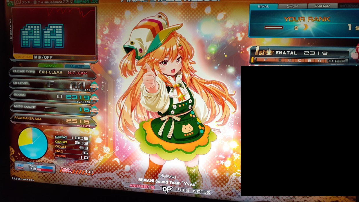 | 順位 | DJ NAME | プレイ環境 | オプション | RESIDENT ☆12 Meissa BAD+POOR数 |